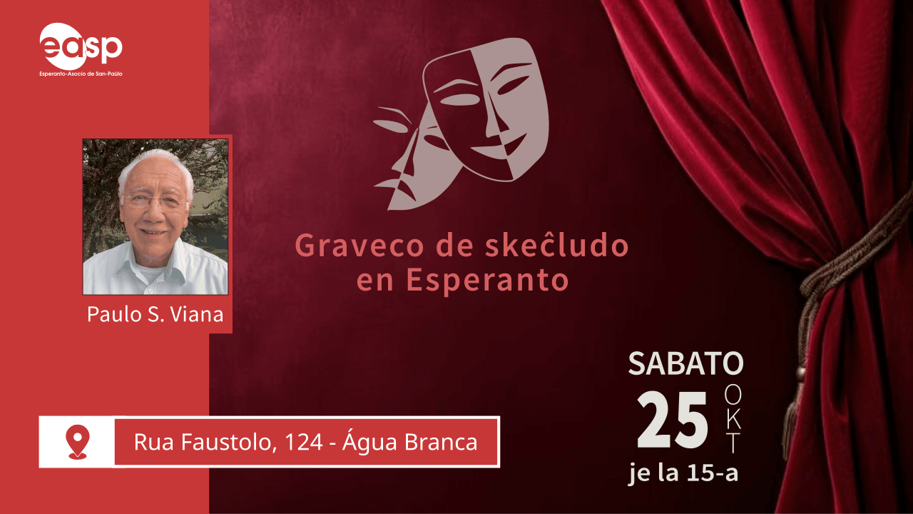 La gasto de la oktobra kulturkunveno de EASP estas la esperantisto Paulo Sergio Viana, el Lorena-SP, kiu prezentos la temon: “Graveco de skeĉludo en Esperanto”.